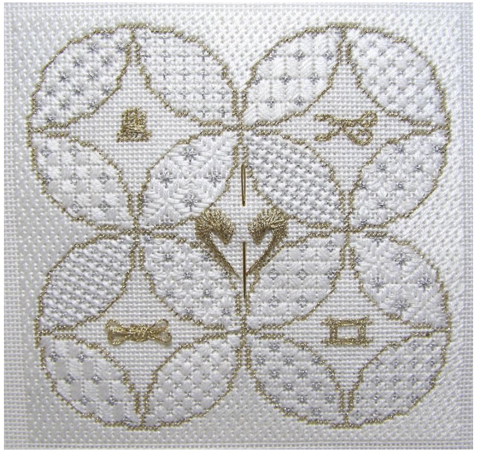Carol also stitched this in red thread on red canvas. She replaced the circle and other motifs